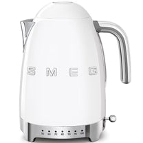 Smeg’s KLF04 variable temperature kettle is designed for those who know that a perfect brew starts with the right temperature. This kettle gives you 7 temperature options ranging from 50°C to 100°C without compromising the retro design. With a generous capacity of 1.7 litres, you can make up to 7 cups of your favourite tea, whether it be breakfast, green, or fruit. The keep warm button allows you to keep the water at your selected temperature for up to 20 minutes, ensuring the perfect beverage is always to hand. Smeg's iconic retro design, coupled with the premium enamelled finish, provides a touch of warmth to any kitchen. With a 3000W power output, this electric kettle offers superfast boiling, and there is also an automatic switch-off at 100°C for added peace of mind. Cleaning is made easy thanks to a removable limescale filter in the spout and a concealed element in the base, improving efficiency and removing any impurities before getting to your cup. An optional acoustic alarm will also let you know when the kettle starts and finishes boiling. The 360° swivel base means that the kettle can be placed anywhere in the kitchen and has a handy 1-meter cable tidy to keep your countertop clear.